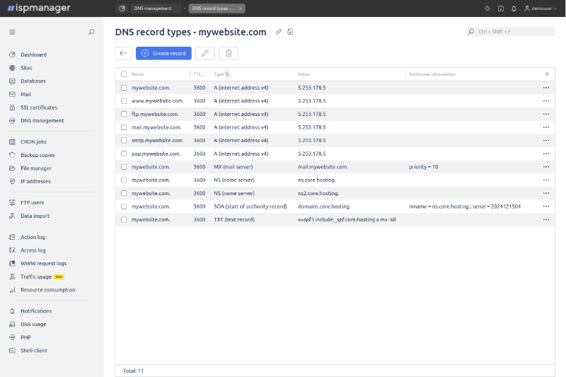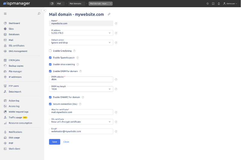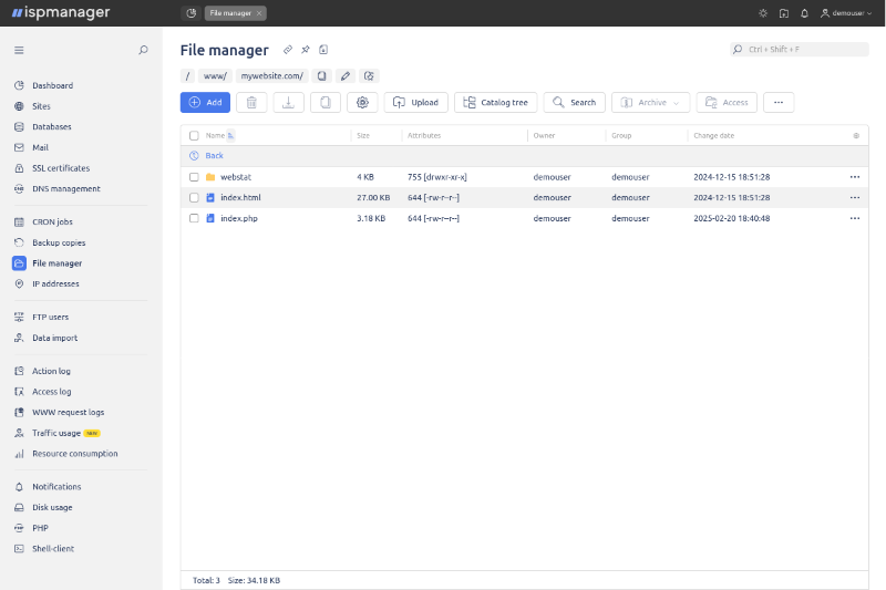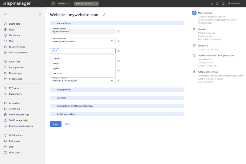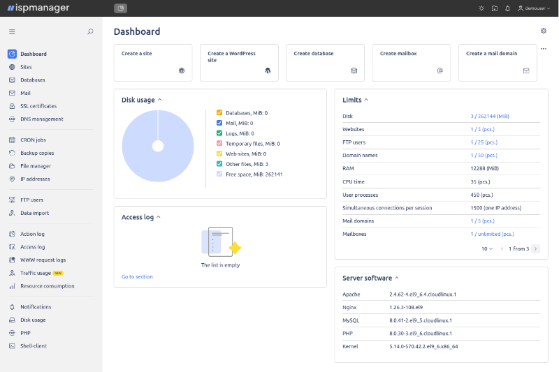 ISPManager vadības panelis – vienkārša pārvaldība WordPress, e-veikaliem, vairākām tīmekļa vietnēm un e-pastam.